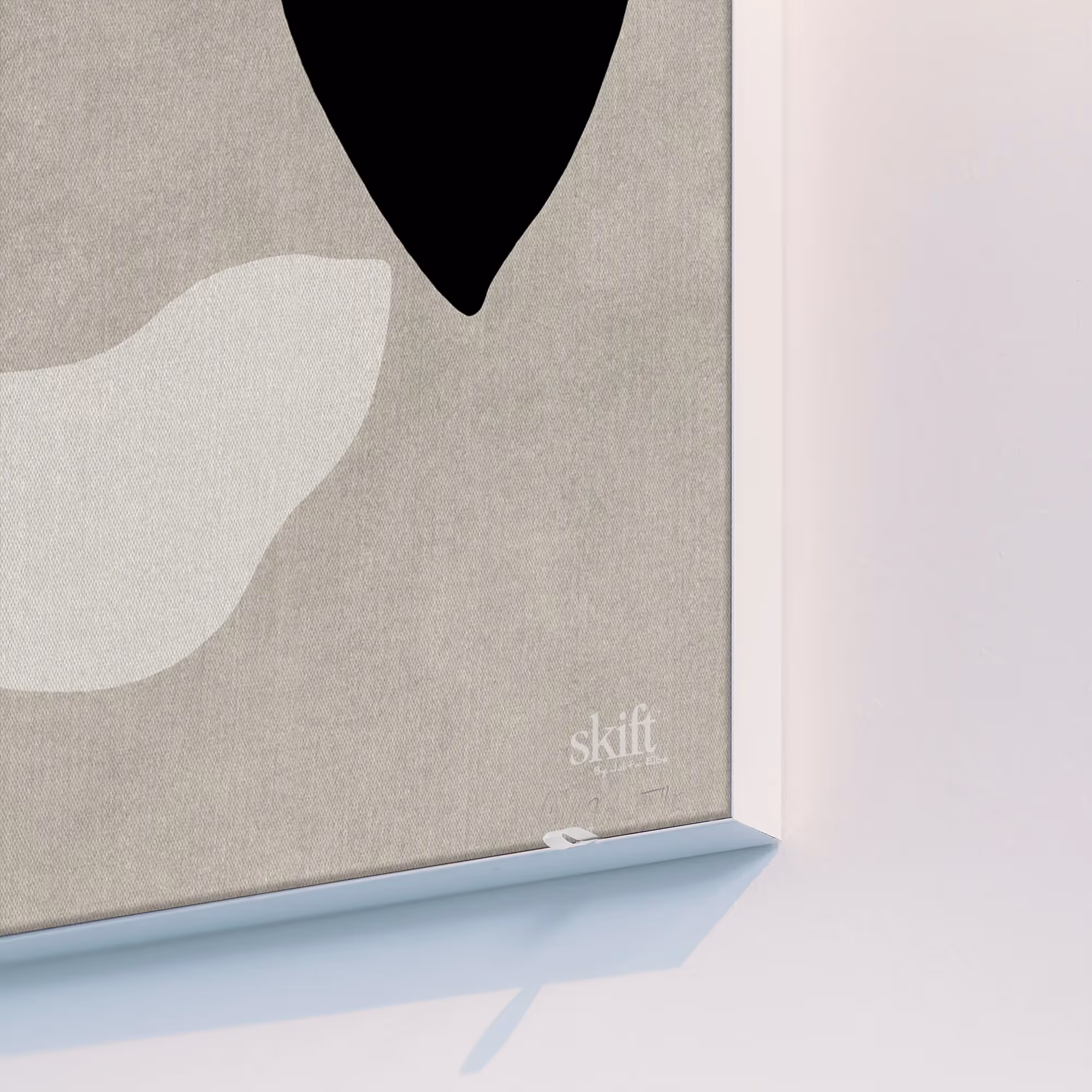 At Skift, it’s all in the details. Our frames come in black, white and aluminium each with a smooth matte finish for a clean, understated look. Once your canvas is in place, it sits just 2 mm from the front edge, giving your art a crisp, modern presence. With a depth of 27 mm, the frame floats slightly off the wall, casting a soft shadow that makes the piece stand out beautifully. Which colour will frame your story?